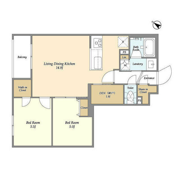 | 専有面積 | 58.57㎡ | 間取り | 2LDK |
