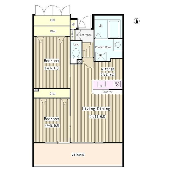 | 専有面積 | 58.2㎡ | 間取り | 2LDK |