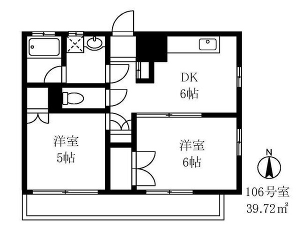 | 専有面積 | 39.72㎡ | 間取り | 2DK |