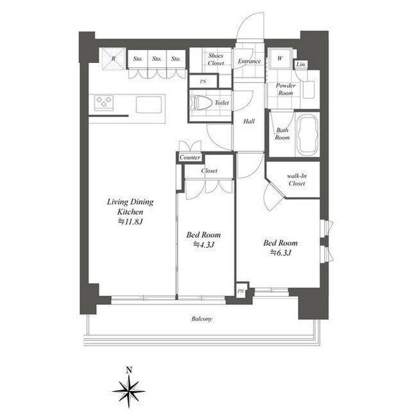 | 専有面積 | 62.37㎡ | 間取り | 2LDK |