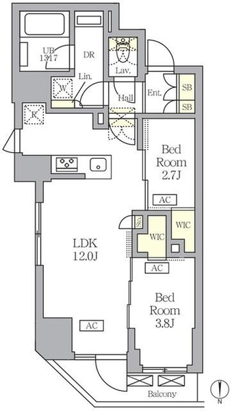 | 専有面積 | 43.88㎡ | 間取り | 2LDK |