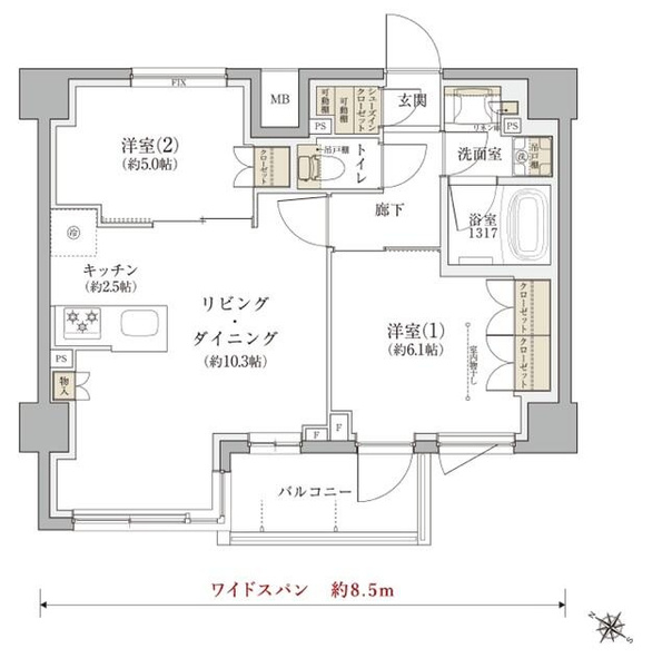 | 専有面積 | 54.35㎡ | 間取り | 2LDK |