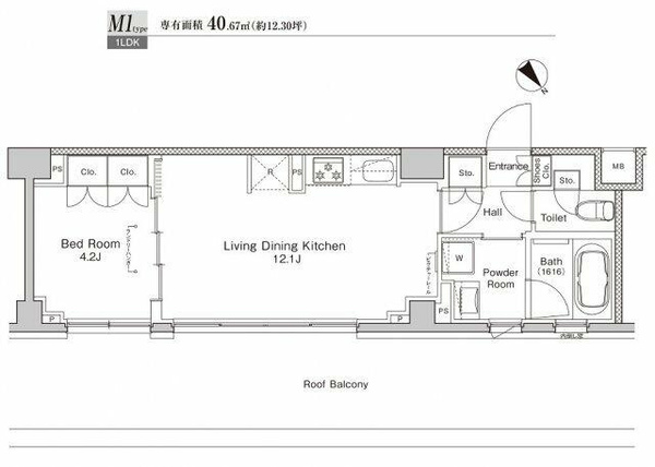 | 専有面積 | 40.67㎡ | 間取り | 1LDK |