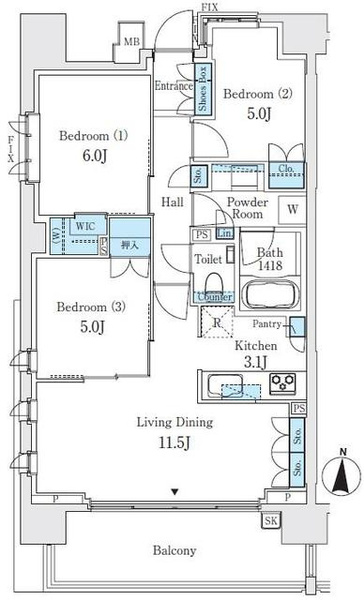| 専有面積 | 68.73㎡ | 間取り | 3LDK |