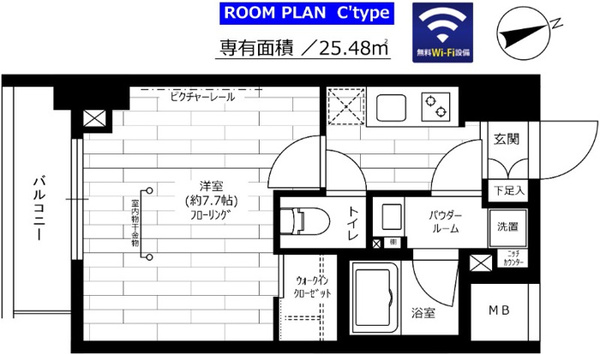 | 専有面積 | 25.48㎡ | 間取り | 1K |