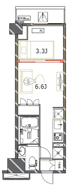 | 専有面積 | 25.59㎡ | 間取り | 1DK |