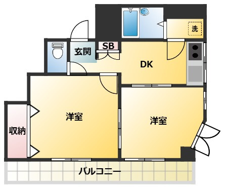 | 面積 | 34㎡ | 間取り | 2DK |