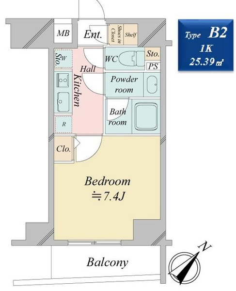| 専有面積 | 25.39㎡ | 間取り | 1K |