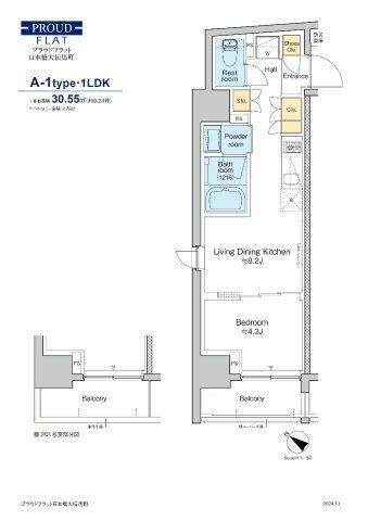 | 専有面積 | 30.55㎡ | 間取り | 1LDK |