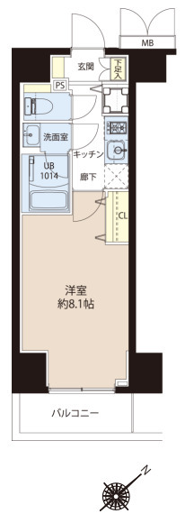 | 専有面積 | 25.53㎡ | 間取り | 1K |