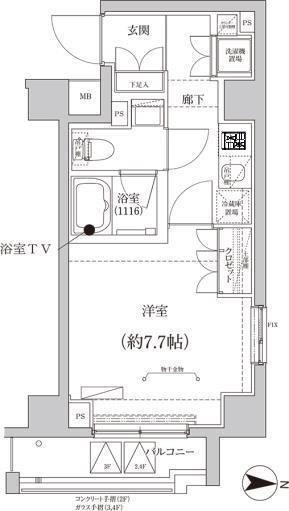 | 専有面積 | 27.33㎡ | 間取り | 1K |